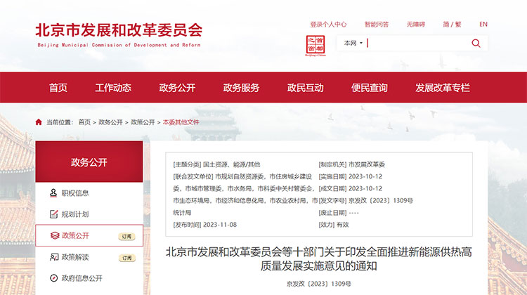 加快能源綠色低碳轉型 北京市發布全面推進新能源供熱實施意見