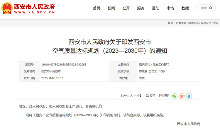 深入推進環境污染防治 西安市發布2023-2030年空氣質量達標規劃