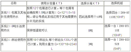 系統3:主機臺數=3噸/0.41×10小時=0.73臺,因此選擇1臺ZWH-BT052E(5HP);