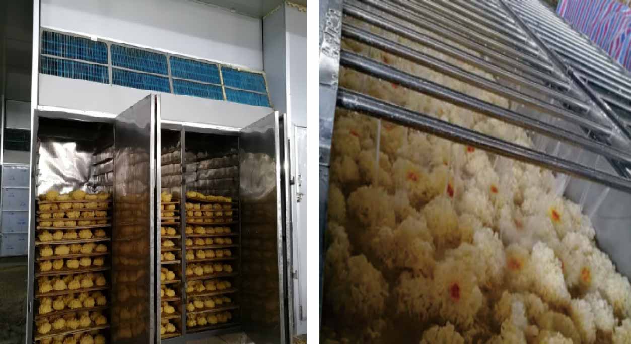 9月22日上午,為了更好地讓研發課題3“菌類多能互補干燥關鍵技術及裝備研究”的教授專家了解正旭熱泵烘干產品、了解正旭多年來在農業烘干行業做出的成果??偨浝黻悓毺臁⒏笨偨浝黻愊槿珟ьI大家參觀公司了在福建古田的大型銀耳干燥示范工程項目。正旭用戶代表為大家詳細地介紹了正旭銀耳熱泵烘干機的使用效果,現場進行了銀耳烘干演示,銀耳成品展示等,對正旭銀耳烘干機表示充分肯定。