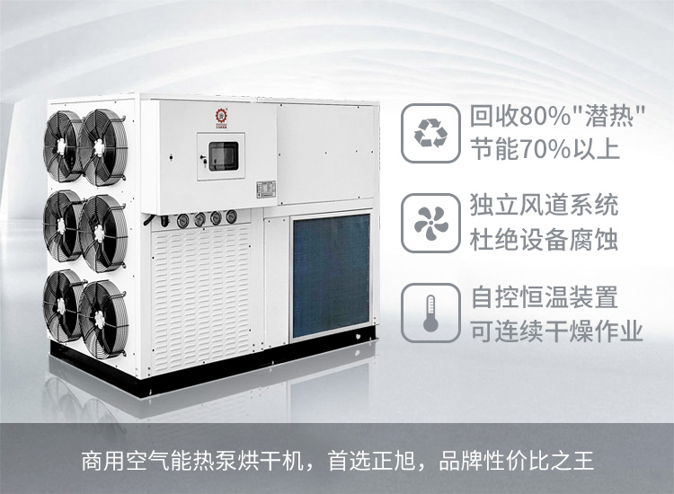 正旭電鍍污泥烘干機采用逆卡諾循環原理,僅使用少量電能驅動壓縮機做功,通過冷媒的物理相變將空氣中的熱量轉移給電鍍污泥,實現污泥的升溫干燥,比傳統電鍍污泥干化設備降低60%以上能耗。其采用閉式循環除濕干燥技術,不僅有效提升內部熱量利用效率,還進一步杜絕了臭氣和粉塵的產生,無論從節能還是環保的角度,都是一款完全可以替代傳統污泥烘干機的設備。