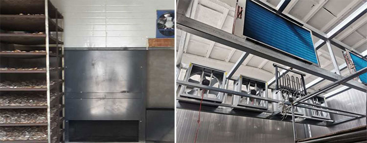 一般來講,垂直熱風(fēng)從下往上吹風(fēng)式烘干,排濕也是順著熱風(fēng)向上排放。烘房內(nèi)垂直向上的熱氣隨著物料格層的增加,穿透性也越來越差,這些使得烘架的設(shè)置和物料的擺放會影響熱風(fēng)循環(huán)流通,導(dǎo)致單位時間內(nèi)烘干不均勻。因此,根據(jù)物料特性并結(jié)合烘房大小來設(shè)置烘架就非常關(guān)鍵。