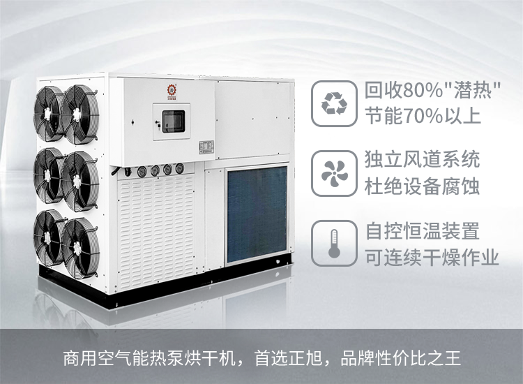正旭熱泵污泥烘干機(jī)的出現(xiàn)給中小型制革企業(yè)帶來低成本處理制革污泥帶來新的希望。通過少量的電能驅(qū)動(dòng)壓縮機(jī)做功,通過冷媒的物理相變將空氣中的熱量轉(zhuǎn)移到污泥烘干房內(nèi),實(shí)現(xiàn)制革污泥的干化處理。相對(duì)電熱烘干節(jié)能70%以上,且無廢氣廢水等污染物排放,是一款真正節(jié)能環(huán)保的污泥烘干設(shè)備。