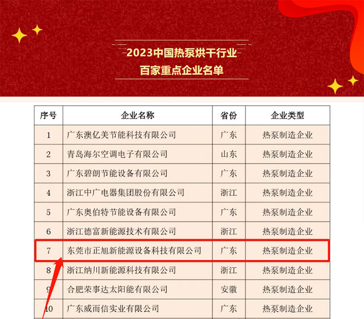 2023年7月,經權威科研院所、知名院校、檢測認證機構、標準制定組織、行業協會等部門的專家組成的評審組評審,正旭憑借出色的技術創新、過硬的產品質量和優秀的品牌信譽榮登《2023中國熱泵烘干行業百家重點企業》榜單,并在同期舉辦的“2023年中國節能協會節能減排企業貢獻獎”評選中獲頒《中國熱泵工農業烘干優秀品牌》,這是正旭連續八年、再度斬獲“中國熱泵工農業烘干優秀品牌”此項殊榮。