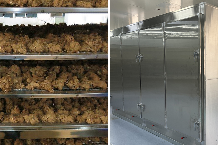 傳統的干燥方法無法滿足市場對三七的高質量要求,所以需要一種效率更高、效果更好的干燥方式。空氣源熱泵烘干節能環保,將空氣作為熱量來源,從空氣中吸收低位熱能,再耗費少量電能將低位熱能轉化為高位熱能,進行物料烘干。正旭空氣源作為熱泵行業的領軍品牌,熱泵烘干設備無論在烘干效果還是節能性上都值得信賴,下面就以正旭生產的空氣源三七熱泵烘干機為例向大家介紹三七的烘干工藝。